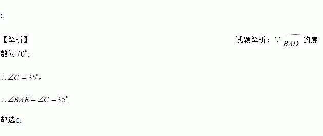 的度数为70°,则∠BAE的度数为( )