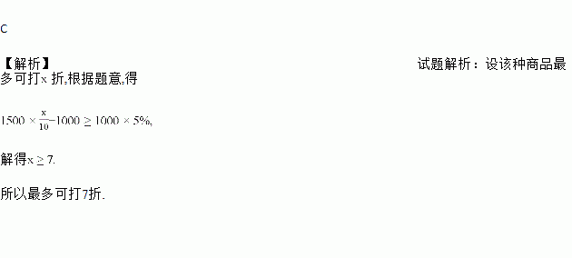 一家服装商场,以1 000元/件的价格进了一批高档服装,出售时标价为1 500元/件,后来由于换季,需要清仓处理,因此商场准备打折出售,但仍希望保持利润率不低于5%,那么该商场至多可以打________折.