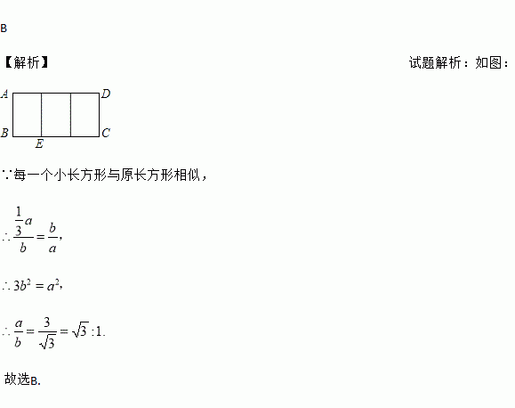 把一个长方形划分成三个全等的长方形,若要使每一个小长方形与原长方形相似,则原长方形的长