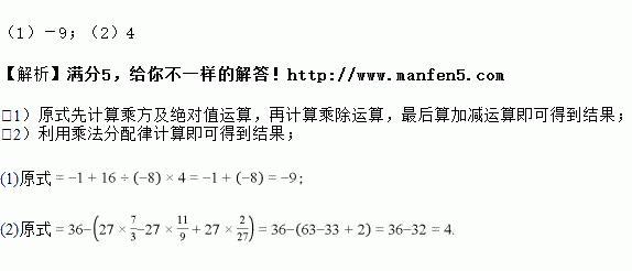 (1)﹣14+16÷(﹣2)3×|﹣3﹣1|.