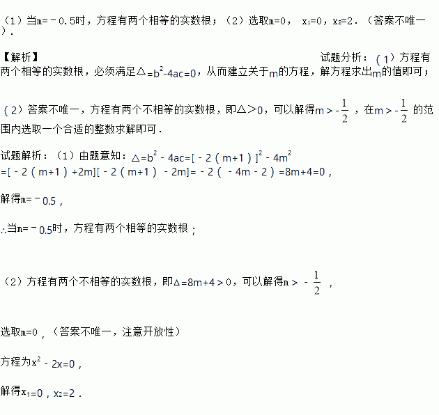 (1)当m取何值时,方程有两个相等的实数根;