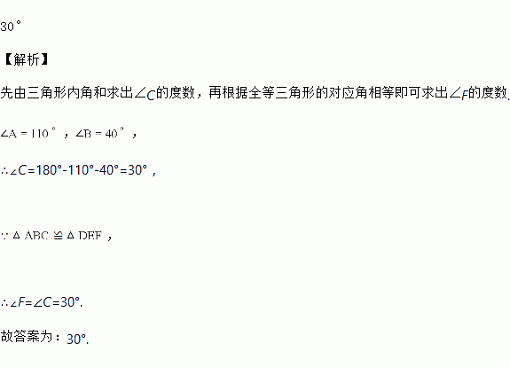 若≌,且,,则 ______ .