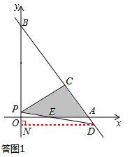 的图象与x轴、y轴分别相交于点A、B.P是射线BO上的一个动点(点P不与点B重合),过点P作PC⊥AB,垂足为C,在射线CA上截取CD=CP,连接PD.设BP=t.