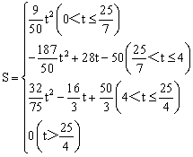 (2)设△PCD与△AOB重叠部分的面积为S,求S与t的函数关系式,并直接写出t的取值范围.