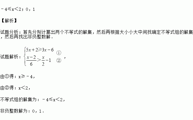 解不等式组:,并写出它的非负整数解.