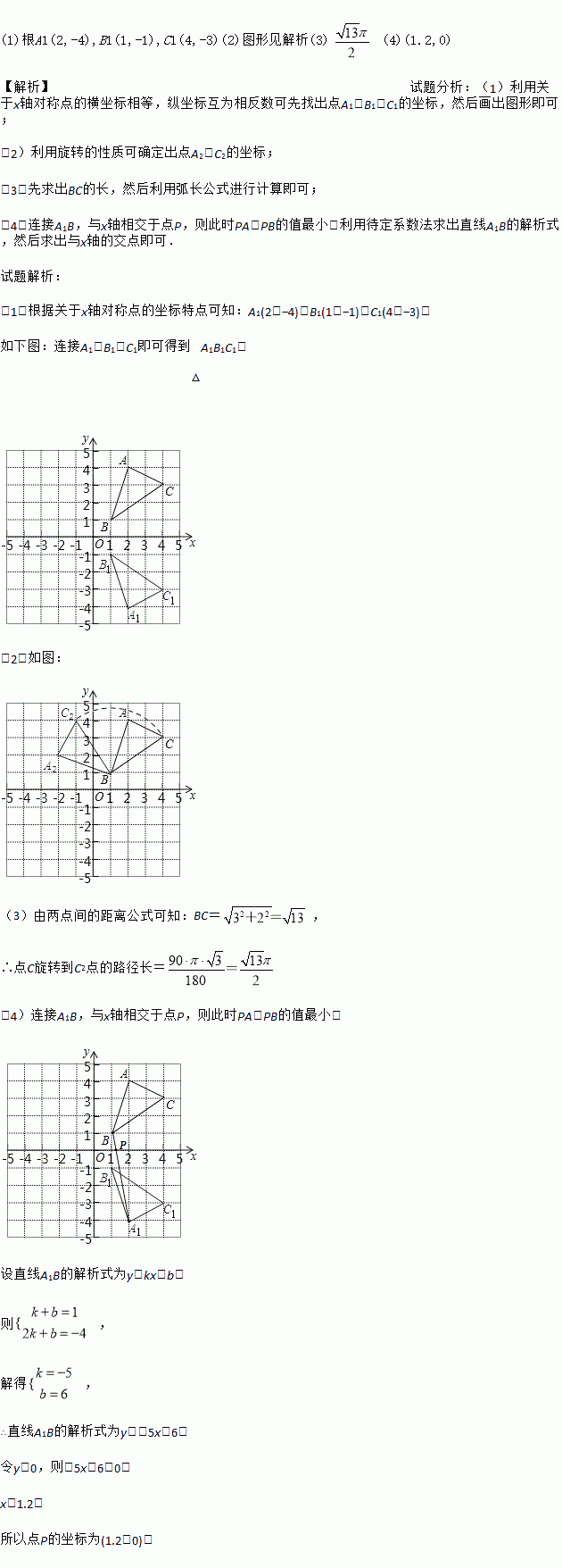 (1)请画出△ABC关于x轴对称的△A1B1C1,并写出点A1的坐标;