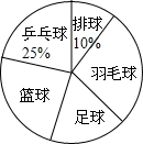 ijÖÐѧΪºÏÀí°²ÅÅÌåÓý»î¶¯£¬ÔÚȫУϲ»¶Æ¹ÅÒÇò¡¢ÅÅÇò¡¢ÓðëÇò¡¢×ãÇò¡¢ÀºÇòÎåÖÖÇòÀàÔ˶¯µÄ1000ÃûѧÉúÖУ¬Ëæ»ú³éÈ¡ÁËÈô¸ÉÃûѧÉú½øÐе÷²é£¬Á˽âѧÉú×îϲ°®µÄÇòÀàÔ˶¯£¬Ã¿ÈËÖ»ÄÜÔÚÕâÎåÖÖÇòÀàÔ˶¯ÖÐÑ¡ÔñÒ»ÖÖ£¬µ÷²é½á¹ûͳ¼ÆÈç±í¡¢ÈçͼËùʾ£º