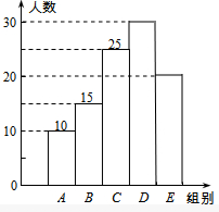 ´ÓÉÈÐÎͼ¿ÉÖª£¬B×éËùÕ¼µÄ°Ù·Ö±ÈÊÇ15%£¬D×éËùÕ¼µÄ°Ù·Ö±ÈÊÇ30%£¬E×éËùÕ¼µÄ°Ù·Ö±ÈÊÇ20%£¬