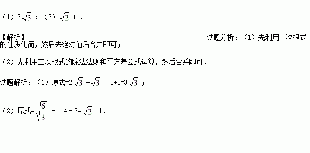 计算:(1) ﹣|﹣3|+ ;(2) +(2+)•(2﹣).