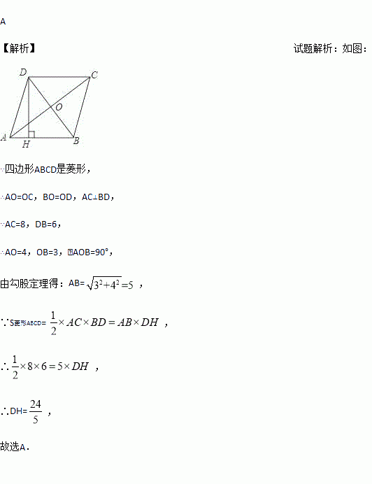 如图,四边形ABCD是菱形,,,于H,则DH等于( )
