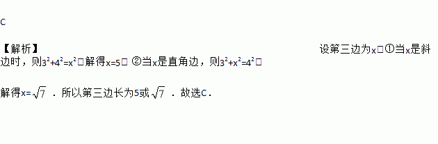 直角三角形的两边长分别是3、4,则第三边的长为( )