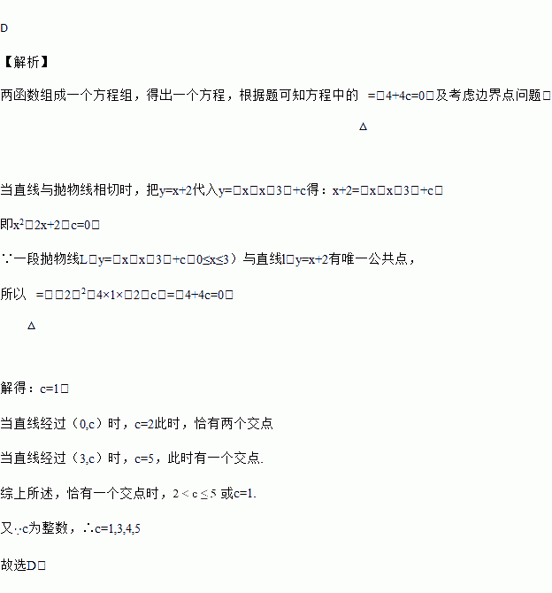 对于题目“一段抛物线L:y=﹣x(x﹣3)+c(0≤x≤3)与直线l:y=x+2有唯一公共点,若c为整数,确定所有c的值,”甲的结果是c=1,乙的结果是c=3或4,则( )