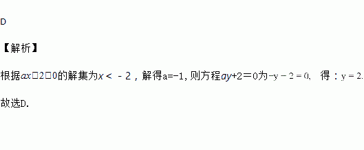 若不等式ax-2>0的解集为x<-2,则关于y的方程ay+2=0的解为( )