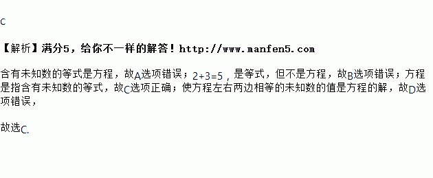 A. 等式都是方程 B. 不是方程就不是等式 C. 方程都是等式 D. 未知数的值就是方程的解