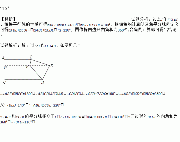如图,已知AB∥CD,∠ABE和∠CDE的平分线相交于F,∠E = 140º,求∠BFD的度数.