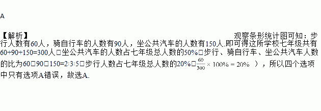 如图是某校七年级学生到校方式的条形图,下列说法错误的是( )