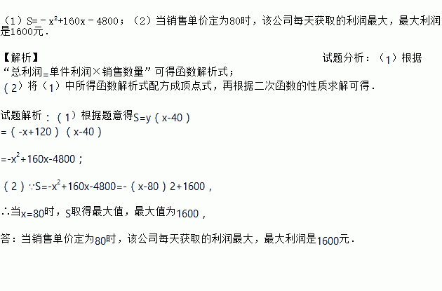(2)当销售单价定为多少时,该公司每天获取的利润最大?最大利润是多少元?