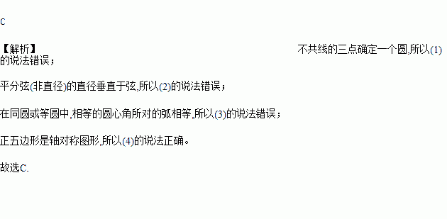 (3)相等的圆心角所对的弧相等; (4)正五边形是轴对称图形.