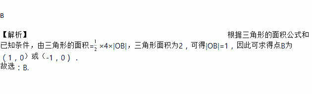 已知A(0,4),点B在x轴上,AB与坐标轴围成的三角形面积为2,则点B的坐标为( )