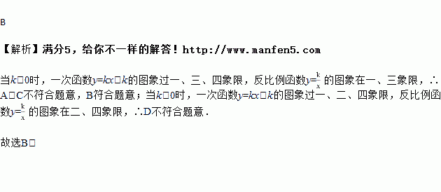 一次函数与反比例函数在同一个坐标系中的图象可能是( )