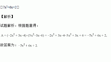 在计算:A﹣(5x2﹣3x﹣6)时,小明同学将括号前面的“﹣”号抄成了“+”号,得到的运算结果是﹣2x2+3x﹣4,则多项式A是______________________.
