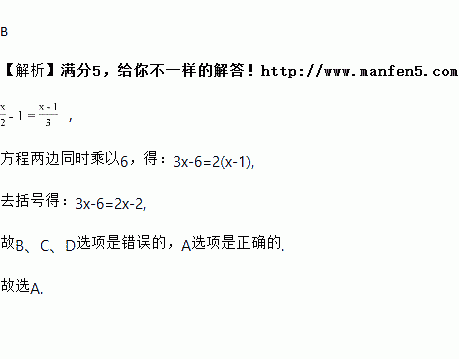 A. 3x-3=2x-2 B. 3x-6=2x-2 C. 3x-6=2x-1 D. 3x-3=2x-1
