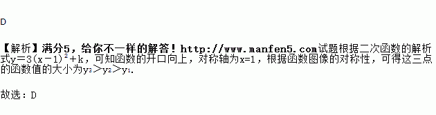 已知二次函数y=3(x﹣1)2+k的图象上有三点A(