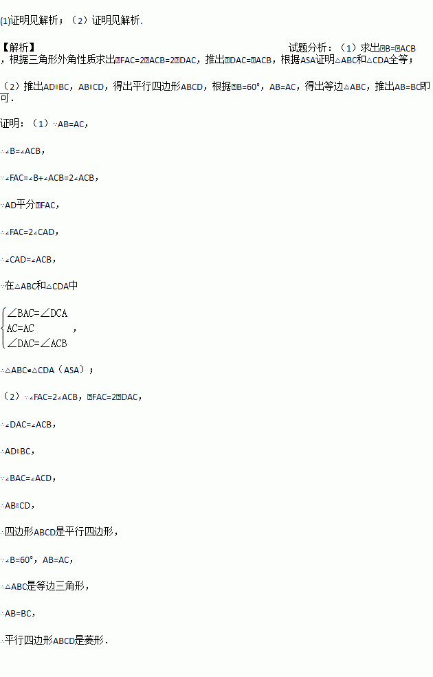 (2)若∠B=60°,求证:四边形ABCD是菱形.