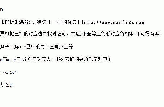 已知图中的两个三角形全等,则∠度数是( )