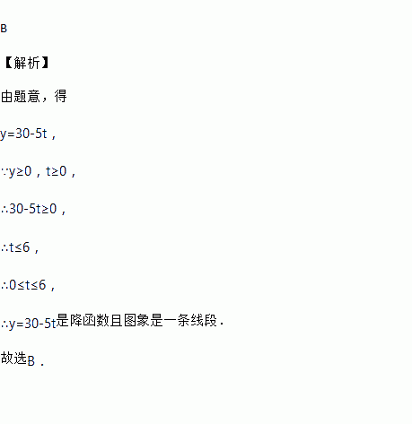 一根蜡烛长30cm,点燃后每小时燃烧5cm,燃烧时蜡烛剩余的长度h(cm)和燃烧时间t(小时)之间的函数关系用图像可以表示为图4中的( ).