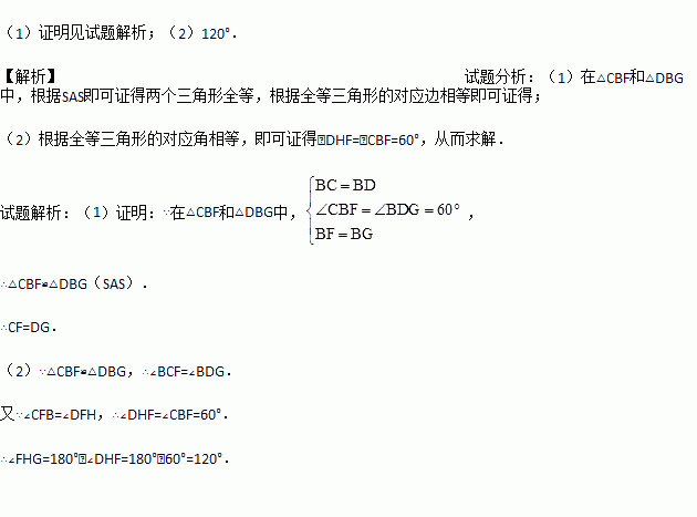 如图,把一个Rt△ACB(∠ACB=90°)绕着顶点B按顺时针方向旋转60°,使得点C旋转到边AB上的一点D,点A旋转到点E的位置.F,G分别是BD,BE上的点,BF=BG,延长CF与DG交于点H.
