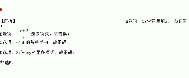C. ﹣4ab的系数是﹣4 D. 2x2﹣6xy+1是多项式
