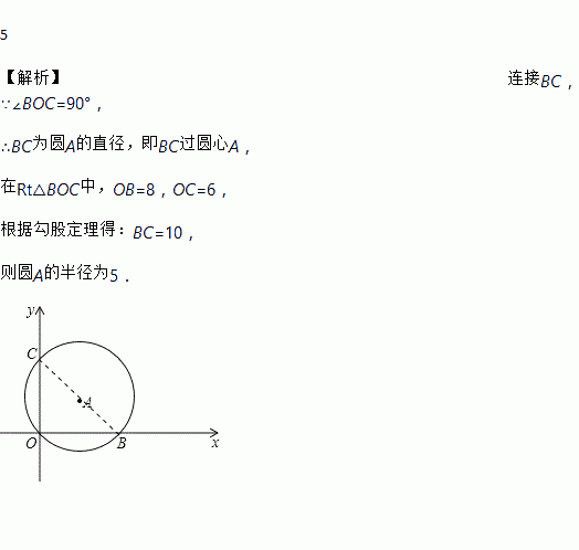 如图,在平面直角坐标系中,⊙A经过原点O,并且分别与x轴,y轴交于B,C两点,已知B(8,0),C(0,6),则⊙A的半径为________.