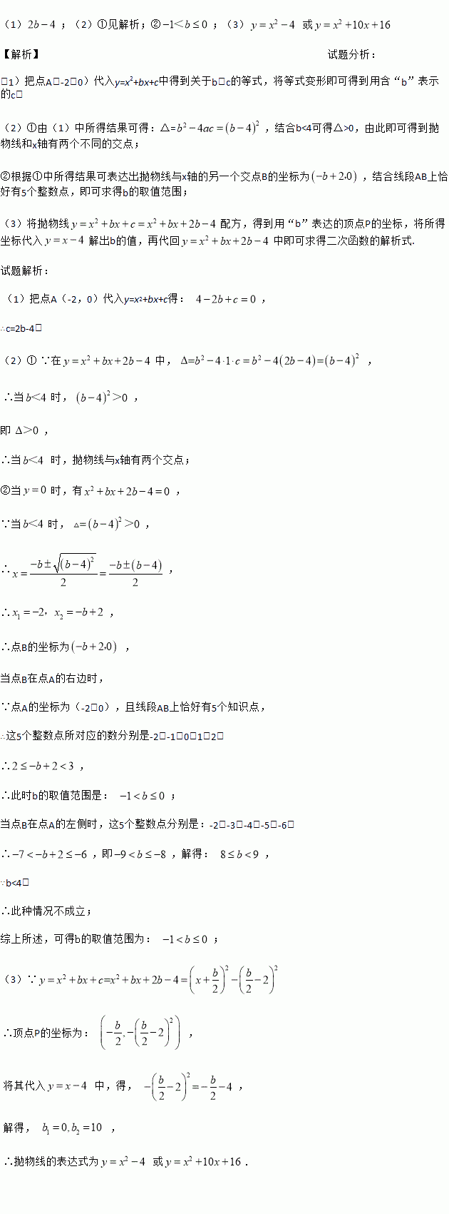 ②设抛物线与x轴的另一个交点为B,当线段AB上恰有5个整点(横坐标、纵坐标都是整数的点),直接写出b的取值范围为 ;