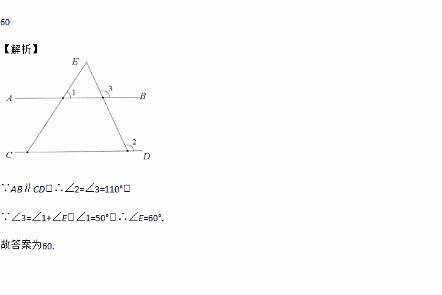 如图,直线AB∥CD,∠1=50°,∠2=110°,那么∠E=__度.