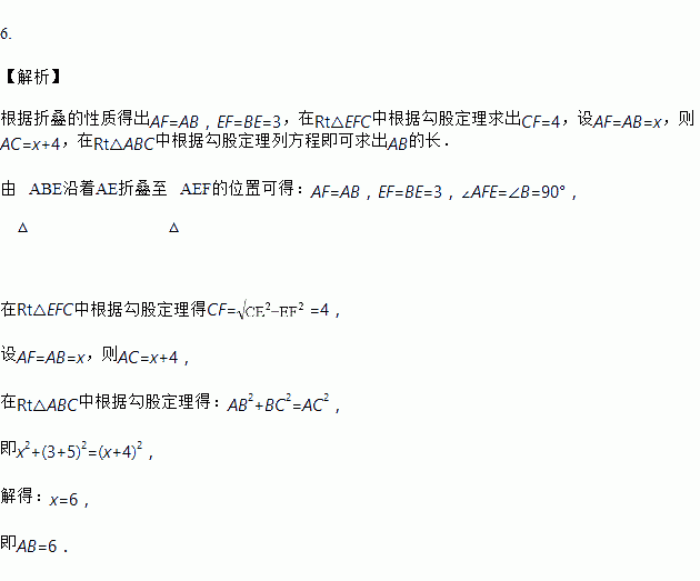 如图,已知矩形ABCD中,将△ABE沿着AE折叠至△AEF的位置,点F在对角线AC上.若BE=3,EC=5,则AB的长为_____.