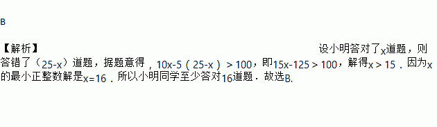 一题倒扣5分,小明参加本次竞赛,得分超过了100分,则他至少答对的题数是![]()