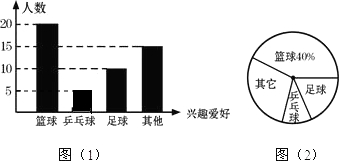 (2)请在图(1)中将表示“乒乓球”项目的图形补充完整;