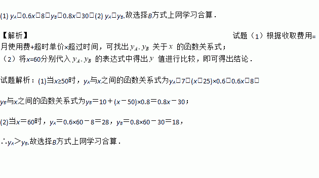 (2)若小明3月份上该网站学习的时间为60小时,则他选择哪种方式上网学习合算?