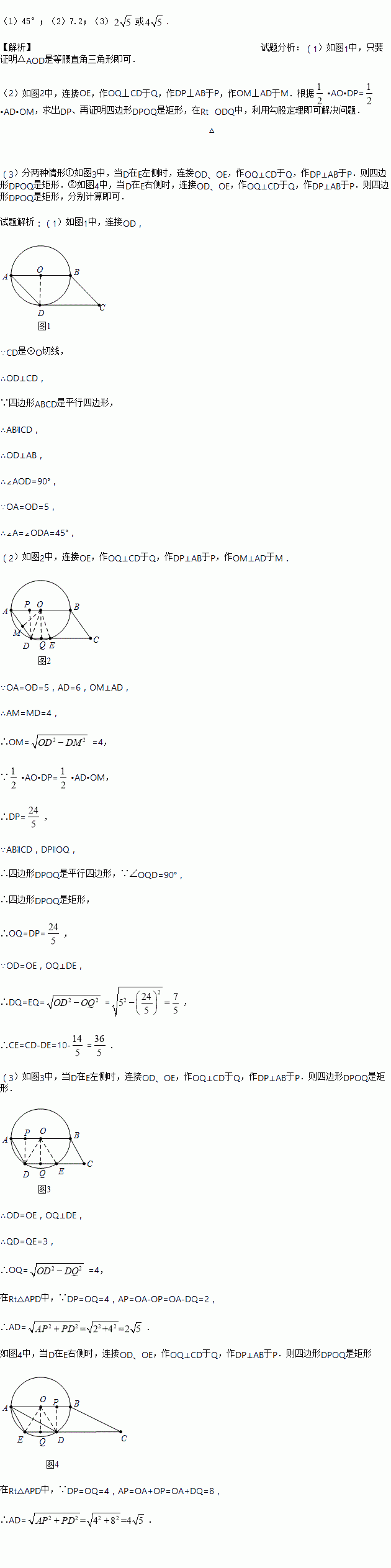 (3)若直线CD交⊙O于另一点E,当DE=6时,求AD的长.
