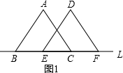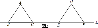 ②如图2,点E在BC外时,∵△ABC沿直线L向左平移m个单位长度,将△DEF向右也平移m个单位长度,
