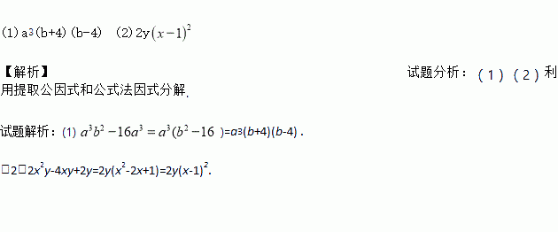 (1) (2)2x2y-4xy+2y