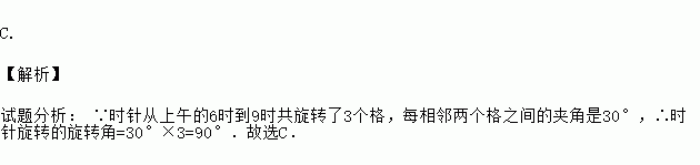 时钟的时针在不停的旋转,时针从上午的6时到9时,时针旋转的旋转角是 ( )