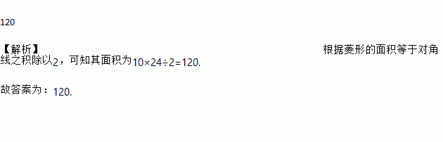 菱形的两对角线长分别为10和24,则它的面积为____________.