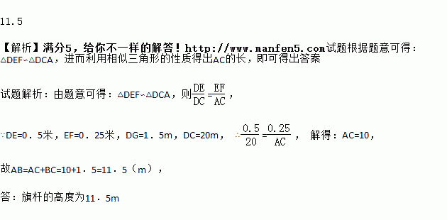 如图所示,某校数学兴趣小组利用自制的直角三角形硬纸板来测量操场旗杆![]()