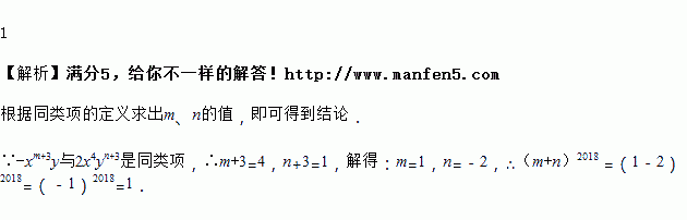 已知-xm+3y与2x4yn+3是同类项,求(m+n)2018的值.