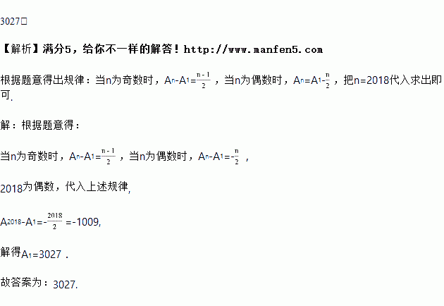 点A1、A2、A3、…、An(n为正整数)都在数轴上.点A2在点A1的左边,且A1A2=1;点A3在点A2的右边,且A2A3=2;点A4在点A3的左边,且A3A4=3;…,点A2018在点A2017的左边,且A2017A2018=2017,若点A2018所表示的数为2018,则点A1所表示的数为_____.
