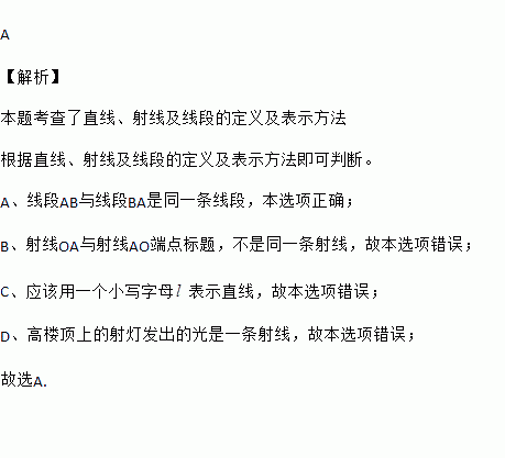 A. 线段AB与线段BA是同一条线段 B. 射线OA与射线AO是同一条射线