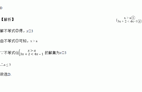A. a>3 B. a≥3 C. a<3 D. a≤3