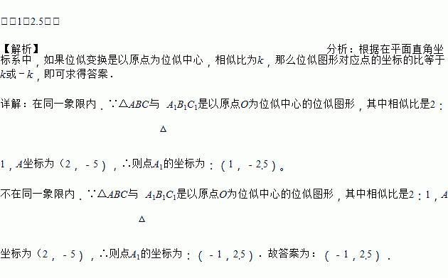 在平面直角坐标系中,△ABC的顶点A的坐标为(2,﹣5),若以原点O为位似中心,作△ABC的位似图形△A1B1C1,使△ABC与到△A1B1C1的位似比为2:1,且点A1和点A不在同一象限内,则点A1的坐标为 .